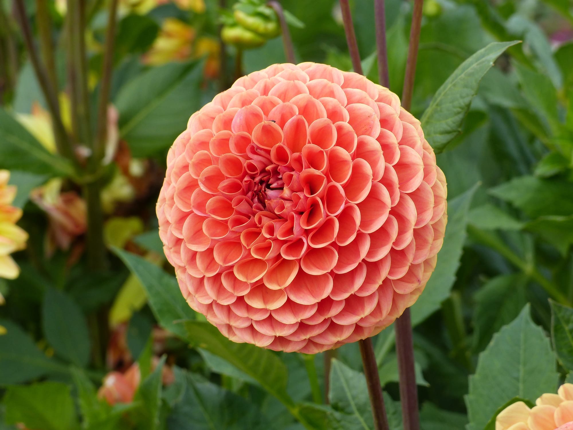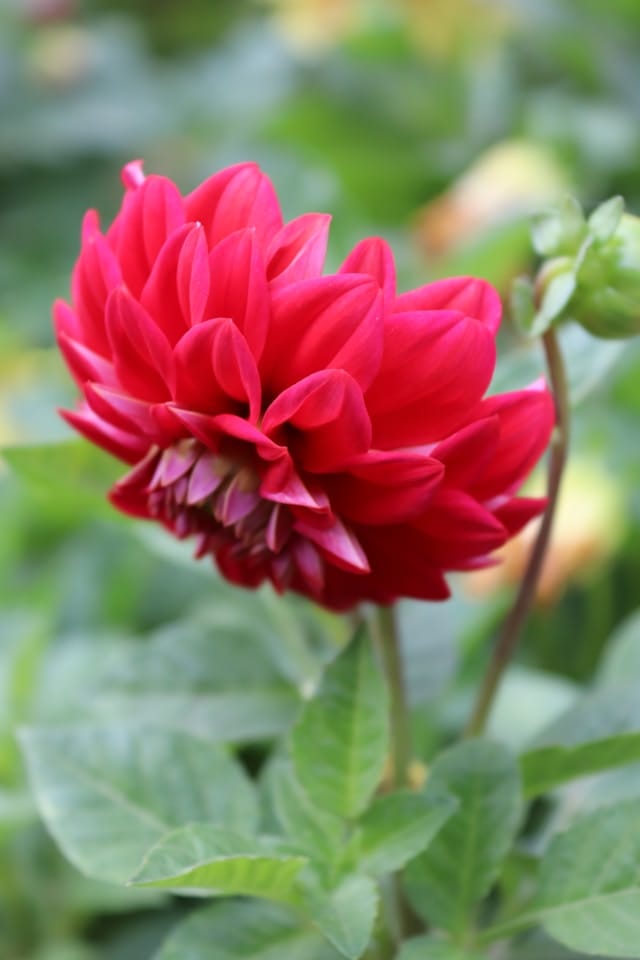Hohe Dahlien können Unterstützung benötigen, um ihre aufrechte Form zu bewahren. Verwenden Sie Stützstäbe oder andere Hilfsmittel.