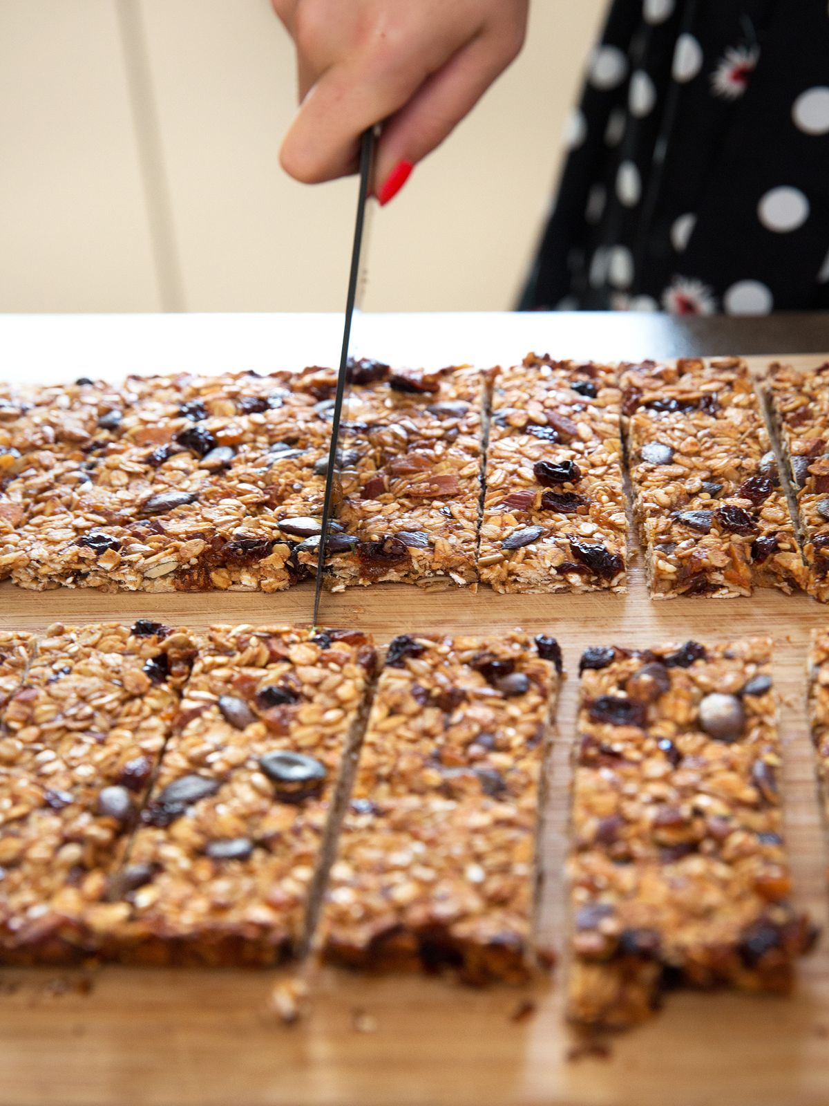 - Wenn das Ganze abkühlt ist, schneiden wir es in Riegel, die wir in einer geschlossenen Box lagern, damit wir sie von der Feuchtigkeit schützen.