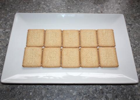 - Nun verteilen wir auf einem Backblech, oder auf einem größeren Tablet die Kekse, auf die wir dann die teilweise fest gewordene Schokoganache verteilen.