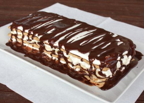 - In dieser Reihenfolge verbrauchen wir dann alle Zutaten. Vor dem Servieren stellen wir das Dessert für ein paar Stunden in den Kühlschrank.